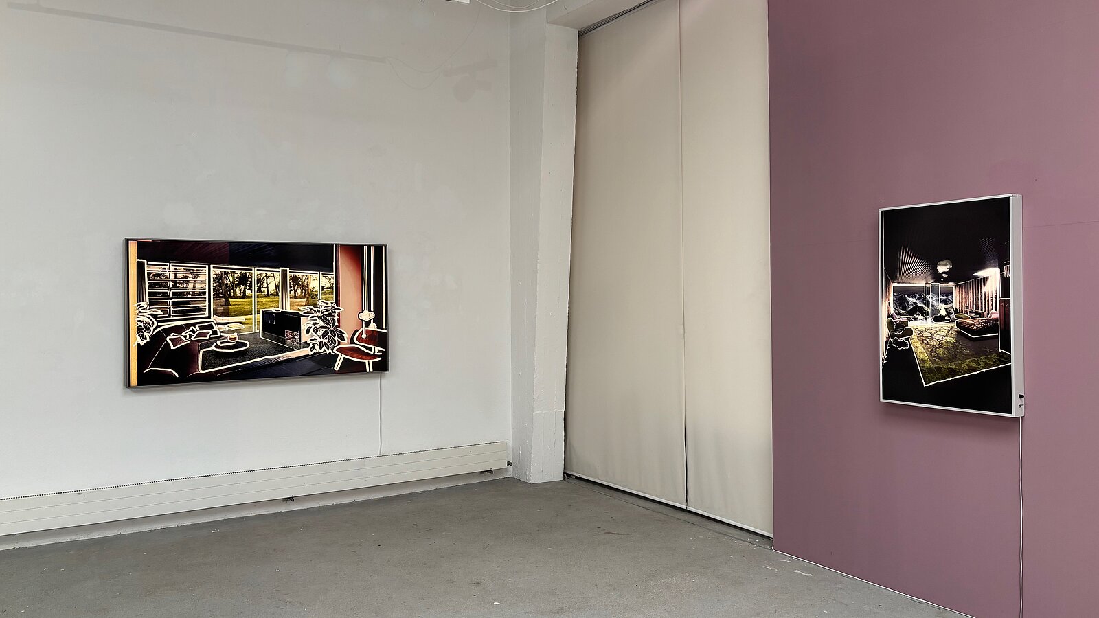 TORSTEN RUEHLE schafft faszinierende Lichtkästen, die Innenräume als hinterleuchtete Szenen darstellen. In diesen beleuchteten Objekten wirken die Räume wie kürzlich verlassen: Teppiche mit Schuhspuren und Kissen mit Körperformen vermitteln Wärme, Duft und ein leises Echo von Leben.